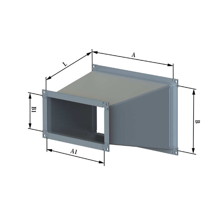 Переход прямоугольный ГиперВент с 700х700 на 450х450 длина 300 (Ф20-Ф20)
